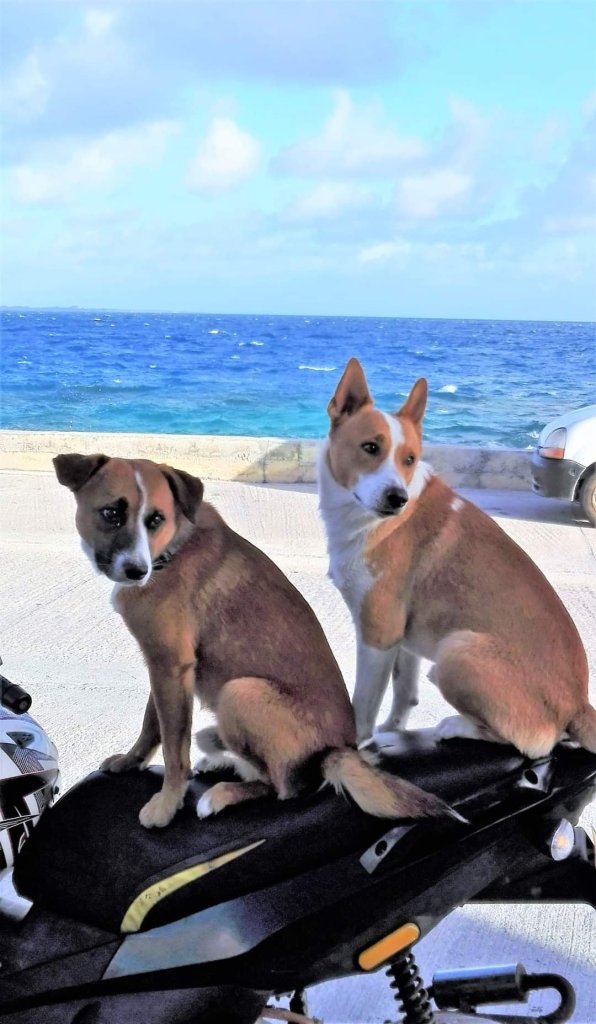 And just for some ambience my friend Patricia in Tahiti took these wonderful tropical beach photos. The doggos look a bit anxious, but the water is totally chilled. 💜